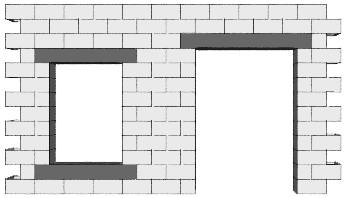 O contorno de portas e janelas são regiões sujeitas a concentração de tensões em virtude das cargas distribuídas, causadas pelo peso próprio da parede que ocasiona a aparição de fissuras indesejáveis nos cantos e meio dos vãos.