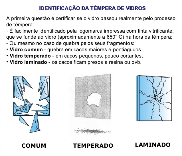 - Verifique os cantos da peça de vidro. Quando o vidro é temperado, é obrigatório que o fabricante grave uma identificação nos quatro cantos, indicando que este é um vidro temperado ou de segurança.